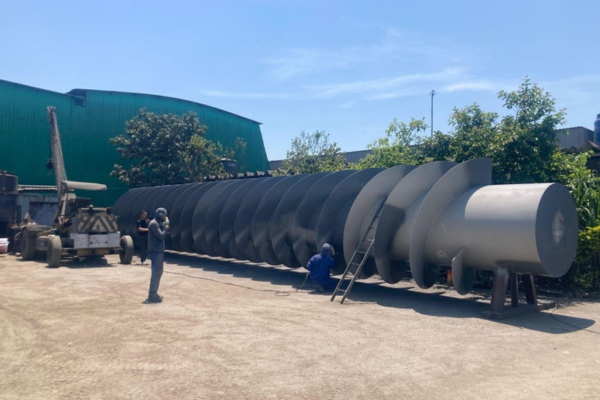 As duas bombas-parafuso serão instaladas em um poço com 14 metros de profundidade, no interior da elevatória. Inclinadas e em rotação contínua, elas captam os resíduos domésticos pela base e os conduzem até o topo por meio dos espaços vazios em sua espiral. O transporte ocorre de forma mecânica, direcionando o esgoto à saída superior, onde se conecta à rede da Sabesp.